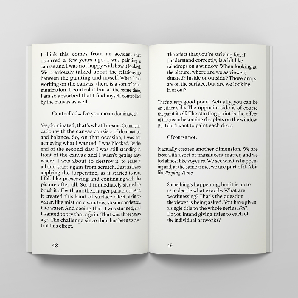 Face to face (Face à Face dans sa version française) est une nouvelle collection de livres d'entretien avec des artistes. Parce que les plasticiens ont souvent beaucoup à dire, parce l'art contemporain nécessite parfois la médiation des mots, parce qu'il est bon de cultiver l'art de la conversation à l'heure des SMS et des émoticônes, Face à face donne le temps et l'espace à une longue conversation entre un artiste et un intellectuel, qu'il soit historien de l'art, commissaire d'exposition, universitaire, auteur, théoricien, etc. Le ton, entre style littéraire et parlé, restitue la complicité de ces moments autour d'une oeuvre en train de se faire.
